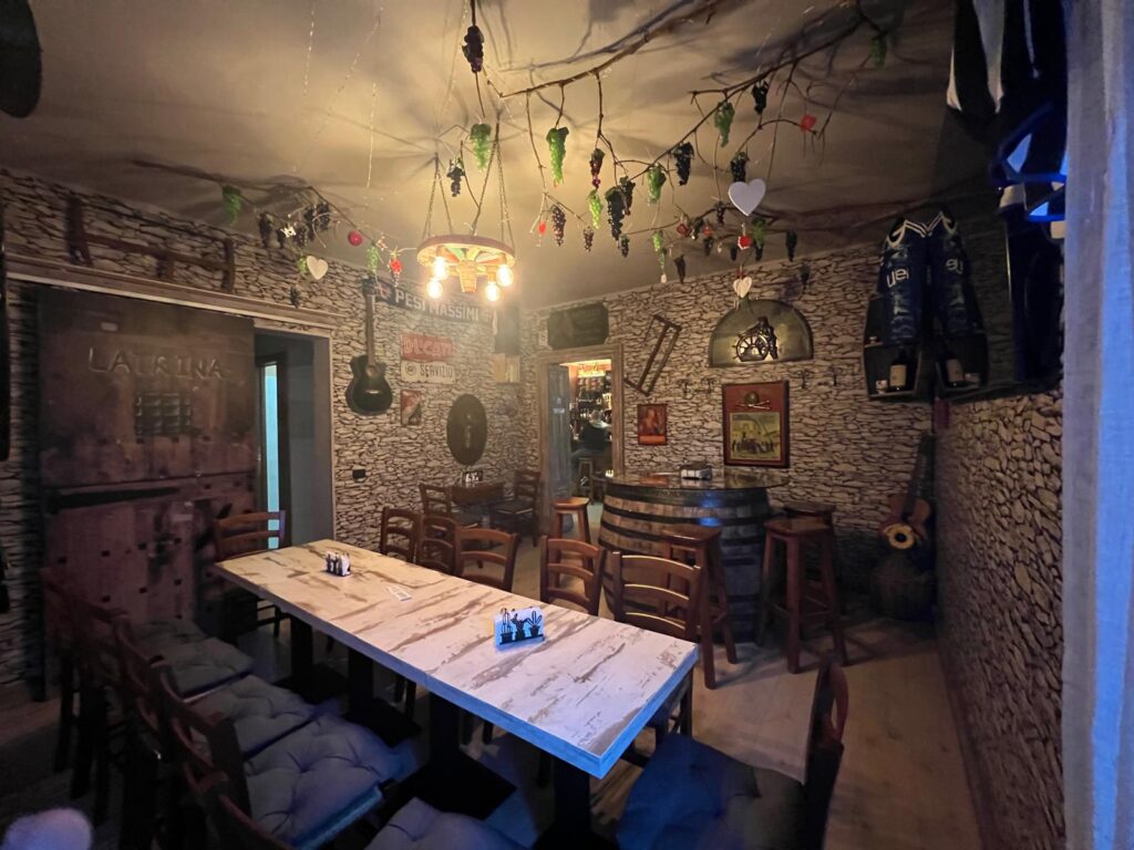 luci soffuse, tavoli e botti in legno, eventi gastronomici, musica live e karaoke a rotazione e una selezione accurata di vini italiani e birre artigianali locali e internazionali.